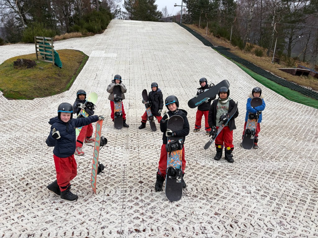 Group 2 had a busy day gorging in the morning and learning to snowboard in the afternoon. We even had to walk past some Highland Cows to get to the waterfalls.
